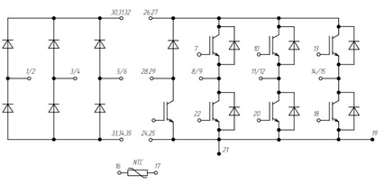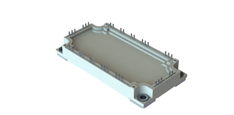 Low Inductance IGBT Module MIRA-IRB12LA-75N with 17 mm Height Housing. IGBT module with blocking voltage 1200V and current 50A. IGBT MIRA-IRB12LA-75N has copper baseplate, improved thermal cycling and integrated temperature sensor.